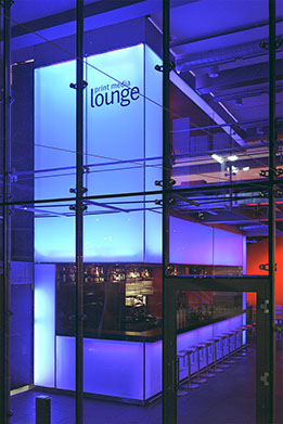 Die “Print Media Lounge” ist ein Teilbereich im Foyer der “Print Media Academy”, dem Kommunikations- und Trainingszentrum der Heidelberger Druckmaschinen AG, ein